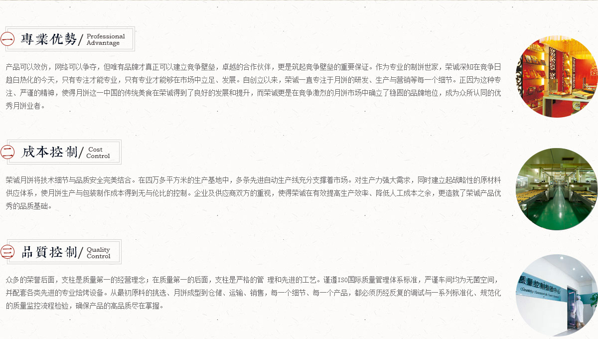 榮誠(chéng)作為一家高標(biāo)準(zhǔn)、規(guī)范化、規(guī)模化的專業(yè)烘焙生產(chǎn)企業(yè),依靠強(qiáng)大的專業(yè)能力,每年可為上千家企業(yè)提供形式靈活、創(chuàng)意時(shí)尚的個(gè)性化定制服務(wù),業(yè)務(wù)類型覆蓋:合作授權(quán)定制、酒店禮食定制、渠道創(chuàng)意定制、集團(tuán)福利個(gè)性化定制、跨界聯(lián)名定制等各式各樣的定制需求。榮誠(chéng)與多個(gè)省市的中國(guó)郵政、中國(guó)聯(lián)通等大型企業(yè)單位建立長(zhǎng)期合作,提供專屬定制禮食產(chǎn)品,接受客戶及第三方檢測(cè)機(jī)構(gòu)的專業(yè)嚴(yán)格驗(yàn)廠。在渠道端二十多年的市場(chǎng)耕耘,榮誠(chéng)與沃爾瑪、大潤(rùn)發(fā)、世紀(jì)聯(lián)華等各大連鎖KA賣場(chǎng)建立穩(wěn)定的合作,產(chǎn)品與服務(wù)獲得消費(fèi)者的廣泛認(rèn)可。