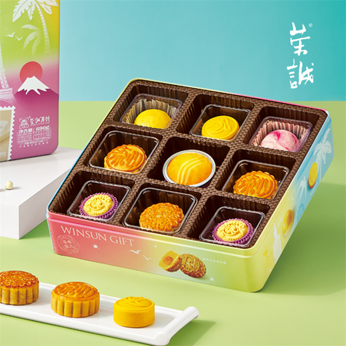 【編 碼】 YBT2315 【條形碼】 6925755560385 【尺 寸】 29.8x29.8x7.7cm 【凈含量】 690g 【規(guī) 格】 690gx8盒/件 【內(nèi)容物】 80g蛋黃白蓮蓉月餅x1,80g椰奶椰絲月餅x1,50g乳酪芝士月餅x1,80g山楂蔓越莓酥皮月餅x1,80g流心榴蓮月餅x1,80g流心奶茶月餅x1,80g桃山皮月餅(豆蓉藍(lán)莓芝士)x2,80g流沙蛋黃酥皮月餅(黑糖奶茶)x1