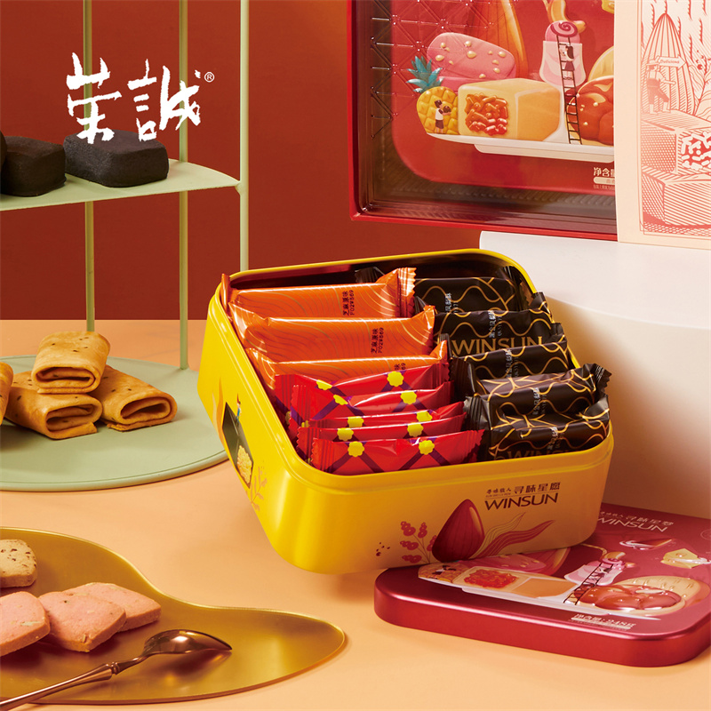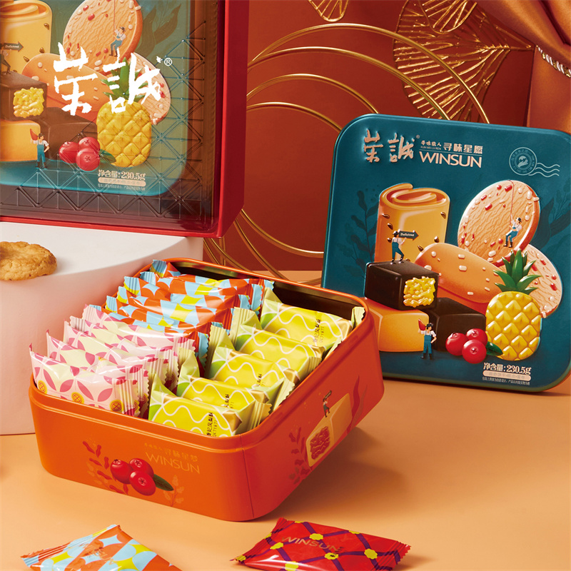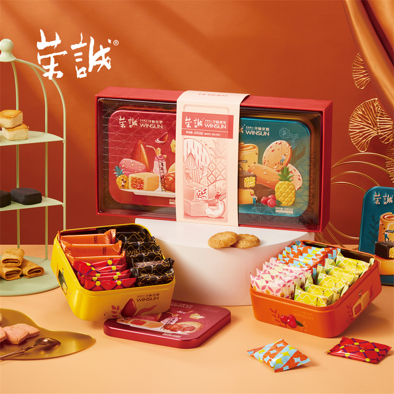 【編 碼】 CGT2301 【條形碼】 6925755535543 【尺 寸】 38.5x20.5x6.9cm 【凈含量】 478.5g 【規(guī) 格】 478.5gx8盒/箱 【內(nèi)容物】  30g香妃鳳梨酥x5,8g果仁曲奇x6,10g香焙杏仁酥x5,8g蔓越莓曲奇x5,13.5g澳式金泊雞蛋卷(芝麻原味)x3,30g黑金鳳梨酥x5