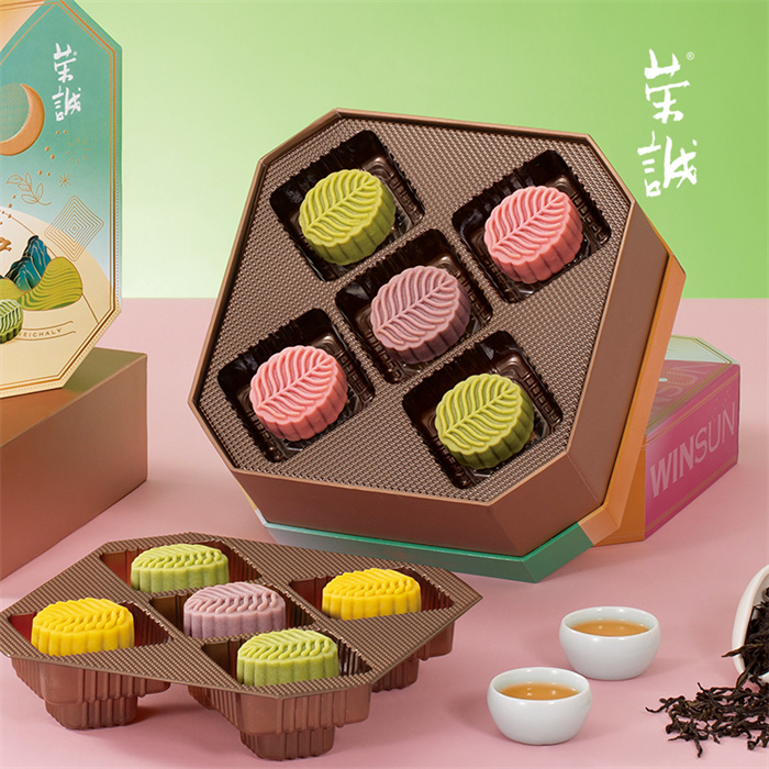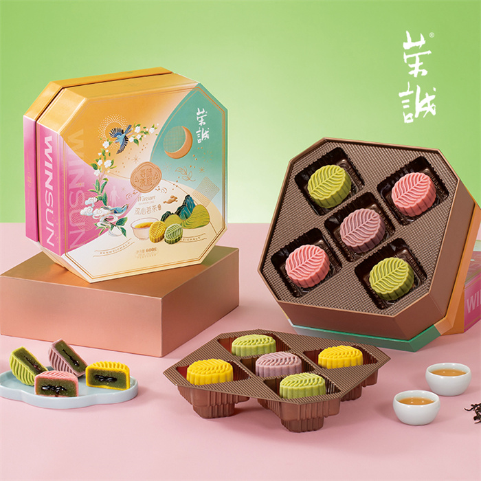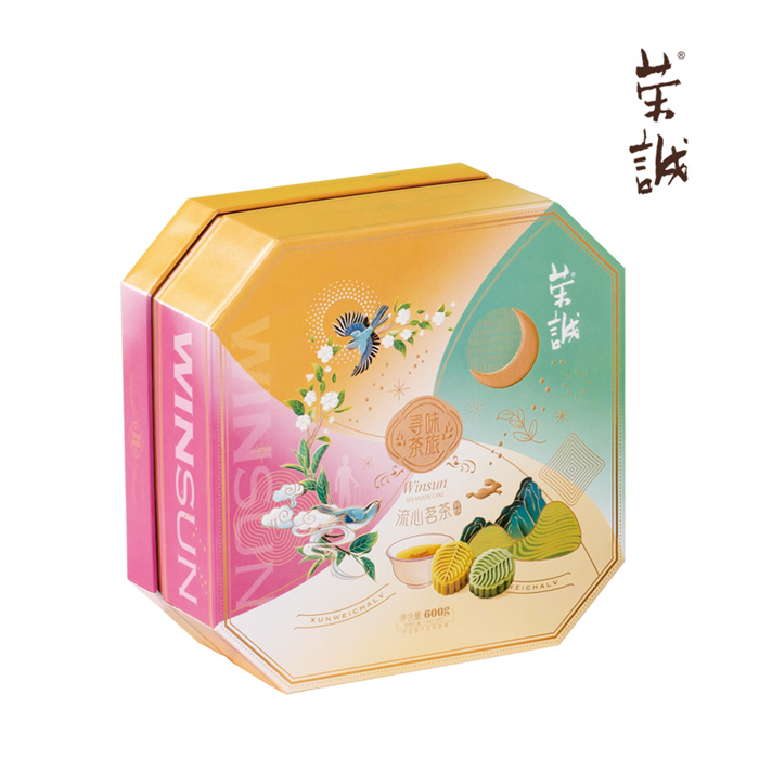 【編 碼】 YBZ2410 【條形碼】 6925755562525 【尺 寸】 24x24x10.3cm 【凈含量】 600g 【規(guī) 格】 600gx8盒/箱 【內容物】 60g流心大紅袍茶月餅x2,60g流心單叢茶月餅x2,60g流心紅茶月餅x2,60g流心普洱茶月餅x2,60g流心龍井茶月餅x2