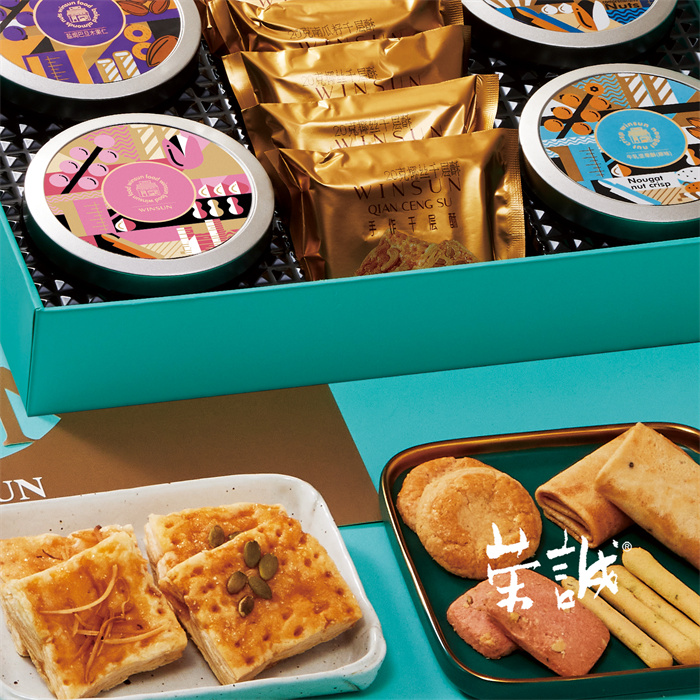 【編 碼】 CGZ2112(Q) 【條形碼】 6925755534539 【尺 寸】 35x26x13cm 【凈含量】 747g 【規(guī) 格】 747gx4盒/箱 【內(nèi)容物】  100g鹽焗巴旦木果仁x1,100g打手瓜子x1,100g綜合果仁x1,66g牛軋堅果酥(原味)x1,20g南瓜籽千層酥x3,20g椰絲千層酥x3,12g蔥香卡拉棒x3,12g芝士棒x3,12g巧巧軟曲奇(巧克力味)x3,10g香焙杏仁酥x4 ,8g果仁曲奇x4,13.5g澳式金泊雞蛋卷(芝麻原味)x3,13.5g澳式金泊雞蛋卷(咸蛋黃)x3
